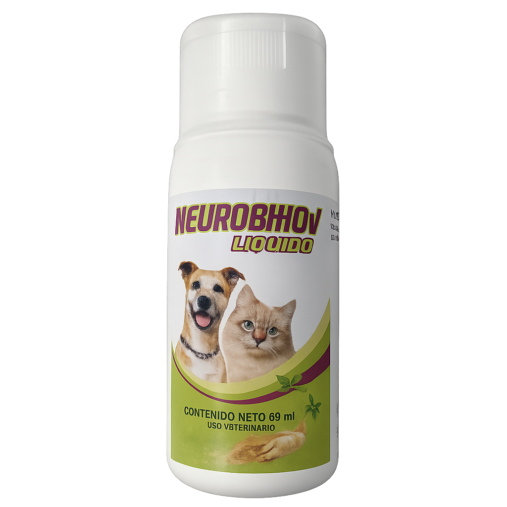 Neurobihov Líquido es un suplemento alimenticio natural diseñado para perros y gatos que apoya la salud cognitiva y el sistema nervioso. Se utiliza como coadyuvante en problemas graves de conducta, alteraciones del comportamiento y como profiláctico para el envejecimiento cerebral.