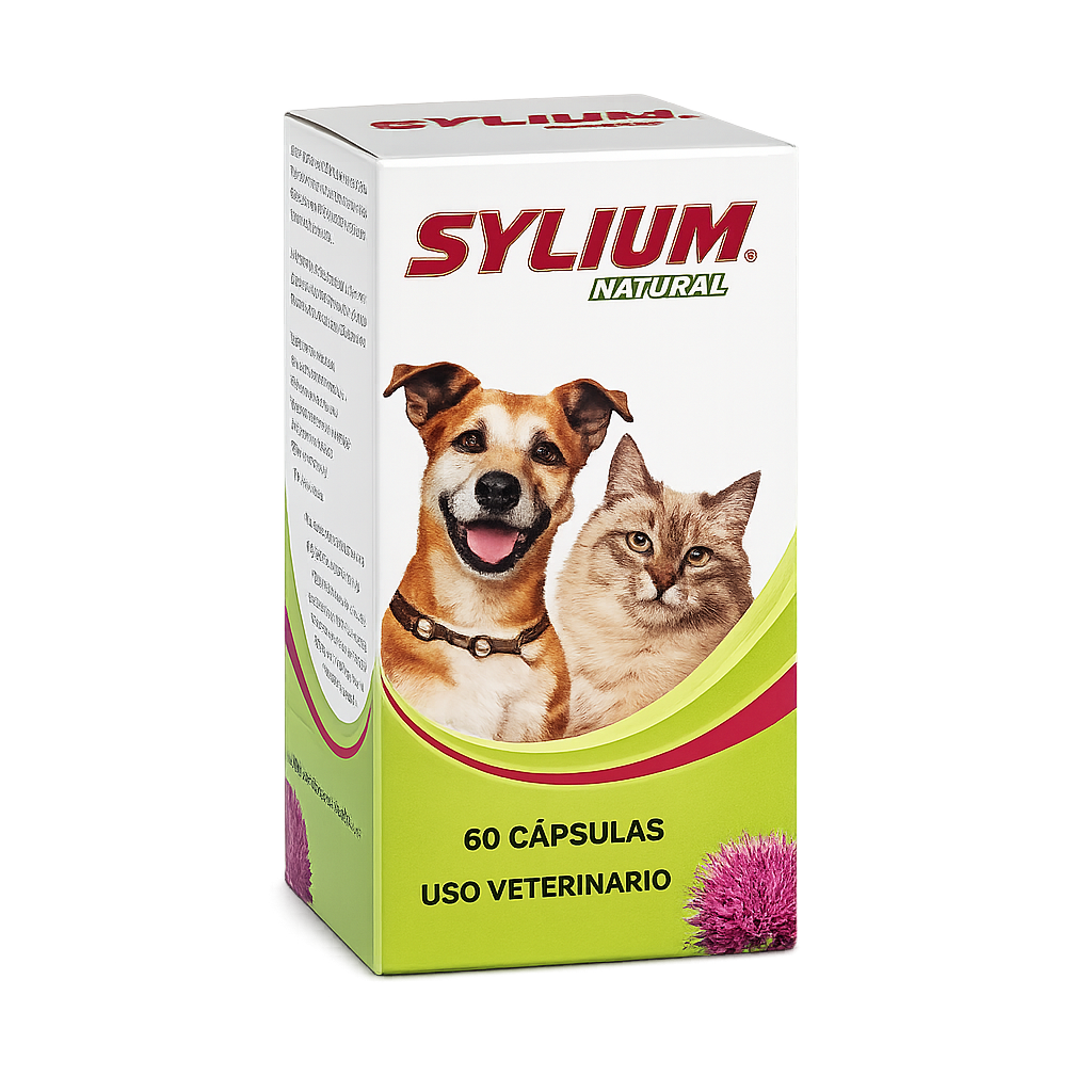 Las cápsulas Sylium son un suplemento alimenticio veterinario diseñado para perros y gatos, formulado para dar soporte a la función hepática y ayudar en la desintoxicación del organismo. No es un producto para consumo humano